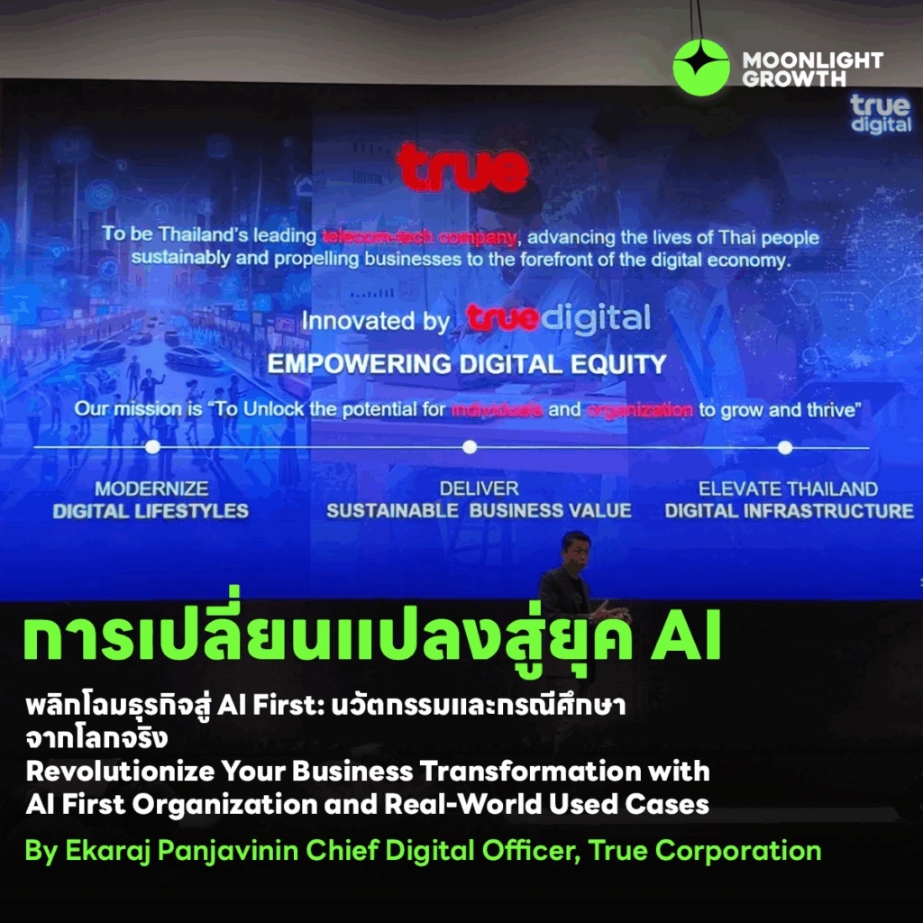 ตั้งแต่ยุค 90 เป็นต้นมา ธุรกิจทั่วโลกเริ่มเปลี่ยนแปลงอย่างรวดเร็วจากการเข้ามาของอินเทอร์เน็ต และในปัจจุบัน ยุค AI กำลังเข้ามามีบทบาทสำคัญในการขับเคลื่อนองค์กร บริษัทชั้นนำอย่าง True ก็ได้ปรับตัวด้วยการพัฒนา Digital Service และ Transform องค์กรสู่ยุค AI โดยมีเป้าหมายหลัก 3 ประการ: