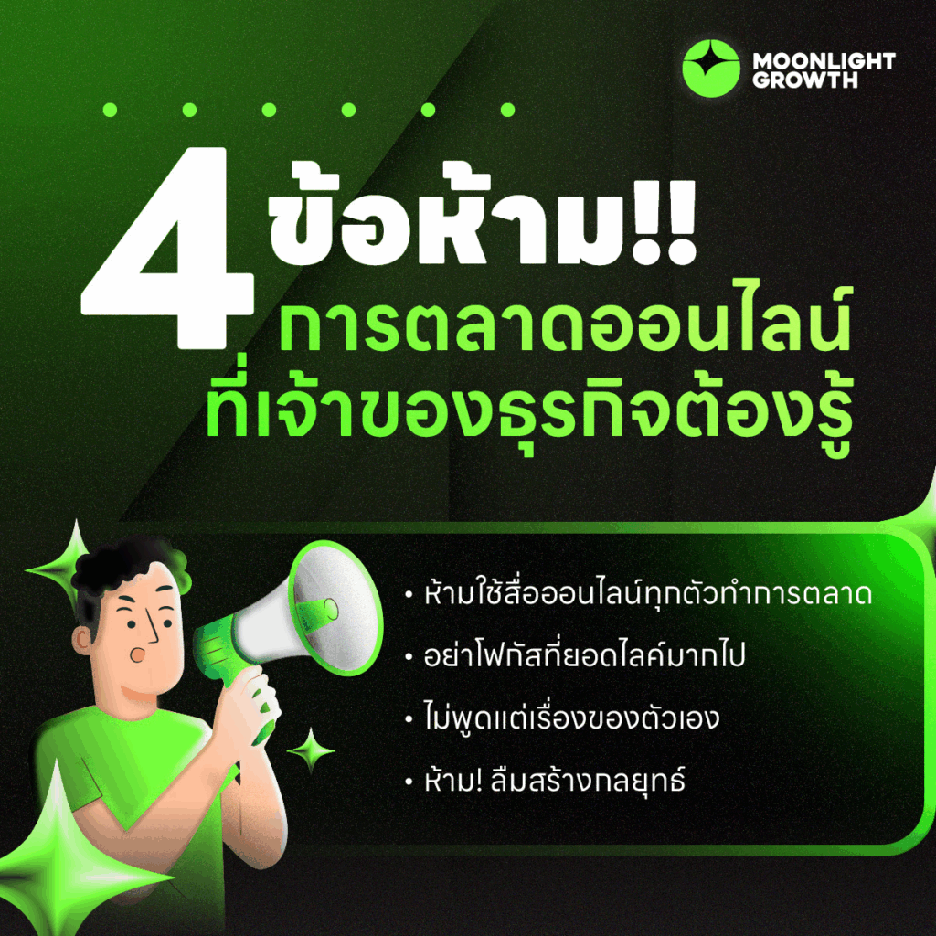 4 ข้อห้าม! การตลาดออนไลน์ ที่เจ้าของธุรกิจต้องรู้somsak cJune 12, 2025 Branding1 min read การตลาดออนไลน์เป็นเครื่องมือสำคัญที่ช่วยให้ธุรกิจเติบโต แต่หลายครั้งที่เจ้าของธุรกิจมุ่งเน้นแค่ “ทำทุกวิธีให้ปัง” โดยลืมว่ามี ข้อห้ามบางอย่างที่ไม่ควรทำ เพราะอาจทำให้เสียเวลาและทรัพยากรโดยเปล่าประโยชน์!1. ห้ามใช้สื่อออนไลน์ทุกตัวทำการตลาด ❌หลายคนคิดว่า “ยิ่งใช้หลายช่องทาง ยิ่งดี” แต่จริงๆ แล้วอาจเป็นการ ลงทุนไม่คุ้มค่า และ สิ้นเปลืองทรัพยากรควรทำอย่างไร?วิเคราะห์กลุ่มเป้าหมาย แล้วโฟกัสแค่ 2-3 ช่องทางหลักวัยทำงาน → Facebook, LinkedInวัยรุ่น/Gen Z → Instagram, TikTokB2B หรือธุรกิจบริการ → LinkedIn, YouTube2. อย่าโฟกัสที่ยอดไลค์มากเกินไป 👍❌ยอดไลค์และแชร์ไม่ได้การันตียอดขายเสมอไป! การเน้นแต่ตัวเลขอาจทำให้คุณพลาด การสร้างความสัมพันธ์กับลูกค้าควรทำอย่างไร?สร้างคอนเทนต์ที่มี คุณค่า เช่น ให้ความรู้ แก้ปัญหา หรือสร้างแรงบันดาลใจวัดผลที่ Conversion Rate (ยอดคลิก, ยอดซื้อ, ลูกค้าใหม่) แทนการเน้นยอดไลค์3. ไม่พูดแต่เรื่องของตัวเอง 🗣️❌การตลาดแบบ Hard Sell (ขายแบบยัดเยียด) ทำให้ลูกค้ารู้สึกรำคาญและมองข้ามแบรนด์คุณควรทำอย่างไร?สร้างบทสนทนา ด้วยเนื้อหาที่น่าสนใจ เช่น เทรนด์ในอุตสาหกรรม, เรื่องราวเบื้องหลังแบรนด์เป็นผู้ฟังที่ดี ด้วยการตอบคำถามและรับฟังความคิดเห็นลูกค้า4. ห้ามลืมสร้างกลยุทธ์! 🗺️❌การทำการตลาดแบบไร้แผนเหมือน เดินเรือไม่มีเข็มทิศควรทำอย่างไร?ตั้งเป้าหมายชัดเจน เช่น เพิ่มยอดขาย 20% ใน 3 เดือนวางแผนกลยุทธ์ ตั้งแต่กลุ่มเป้าหมาย, ช่องทางสื่อสาร, งบประมาณ และการวัดผล 📢 ต้องการปรึกษาการตลาดออนไลน์ฟรี?📥 Inbox: https://m.me/MoonlightGrowth/📞 โทร: 089-199-6491🌐 เว็บไซต์: https://mlgrowth.io/📧 อีเมล: [email protected]#การตลาดออนไลน์ #ธุรกิจออนไลน์ #DigitalMarketing #ข้อห้ามการตลาด