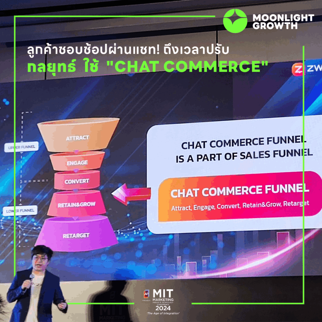 ลูกค้าชอบช้อปผ่านแชท! ปรับกลยุทธ์ด้วย Chat Commerce 5 ขั้นตอนsomsak cJune 13, 2025 Branding1 min read 🚀 Chat Commerce คือเทรนด์การขายยุคใหม่ที่ลูกค้านิยมช้อปผ่านแชท! ปรับกลยุทธ์ให้ปิดการขายเร็วขึ้นด้วย 5 ขั้นตอนนี้📌 5 ขั้นตอนปิดการขายผ่านแชท (Chat Commerce Funnel)1️⃣ ดึงดูดลูกค้า (Attract)เชื่อมทุกช่องทางสู่ Inbox เช่น QR Code, Link ใน BIO, คอมเมนต์, Location, Tag บน Instagramทำให้ลูกค้าเห็นช่องทางการติดต่อชัดเจน2️⃣ สร้างปฏิสัมพันธ์ (Engage)ส่งข้อความต้อนรับแบบ Personalized ให้ลูกค้ารู้สึกพิเศษแบ่งกลุ่มลูกค้าด้วย Chat Tag เพื่อดูแลอย่างตรงจุดติดตาม Follow Up อย่าปล่อยให้แชทเงียบ!สรุปคำสั่งซื้อในแชทเพื่อความรวดเร็ว3️⃣ ปิดการขาย (Convert)รองรับการชำระเงินในแชทผ่าน Payment Link, Web Popup, Meta Pay, Line Payติด Conversion Tag หลังชำระเงินเพื่อเก็บข้อมูลแบ่งกลุ่มลูกค้า Paid/Non-Paid/Recurring สำหรับ Remarketing4️⃣ รักษาลูกค้า & ต่อยอด (Retain & Grow)ใช้ CRM/CDP บริหารความสัมพันธ์ลูกค้า สร้างยอดซ้ำสร้าง Custom Audiences เพื่อยิงแอดแม่นยำวิเคราะห์ผลลัพธ์ด้วย Ad Manager Report เพื่อปรับปรุงประสิทธิภาพ5️⃣ ยิงซ้ำ (Retarget)ยิงแอด Retargeting ไปยังคนที่เคยทักแชทเลือกกลุ่มเป้าหมายเจาะจงเพื่อประสิทธิภาพสูงสุดBroadcasting แนะนำโปรโมชั่นหรือสินค้าใหม่🚀 ใช้ Chat Commerce สร้างยอดขายให้ธุรกิจโตแบบก้าวกระโดด!👉 ติดตามเพจ Moonlight Growth สำหรับอัปเดตความรู้การตลาดและเทรนด์ใหม่ๆ#MoonlightGrowth #DigitalAgency #ChatCommerce #MarketingTips #Ecommerce #RetentionMarketing #LINE #FacebookMarketing #InstagramMarketing